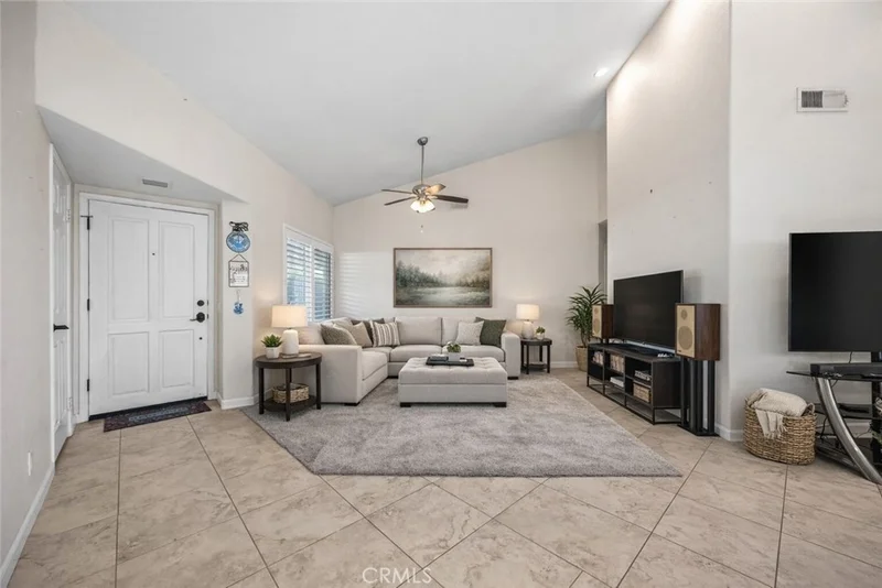 Welcome to this well maintained single-story home, ideally situated in the highly desirable Westside Murrieta community. From the moment you step inside, you’re greeted by an open-concept formal living and family room highlighted by soaring high ceilings, abundant natural light, and a cozy gas fireplace creating the perfect backdrop for both relaxing evenings and lively gatherings. Warm neutral paint tones pair seamlessly with the tile flooring, adding to the home’s inviting ambiance. The spacious kitchen is an entertainer’s dream, featuring an eat-at island, rich granite countertops, and generous cabinet and counter space. A seamless flow from the kitchen to the dining area and family room makes this layout ideal for hosting and everyday living. Down the hall, two spacious guest bedrooms share a well-appointed guest bathroom. The master suite is a peaceful retreat of its own, complete with private patio access through sliding glass doors, a large walk-in closet, and an airy master bathroom offering the perfect blend of comfort and functionality. Step outside to your private backyard oasis, surrounded by mature trees that provide natural shade and tranquility. Enjoy morning coffee or dining alfresco beneath the covered patio just off the dining room an ideal space to take in the year-round Southern California sunshine. This home is also perfectly positioned near top-rated schools, community parks, and the neighborhood pool and spa offering a resort-style lifestyle just minutes from your front door. A wonderful opportunity to own in one of Murrieta’s most sought-after neighborhoods! **Solar to be assumed by Buyer**