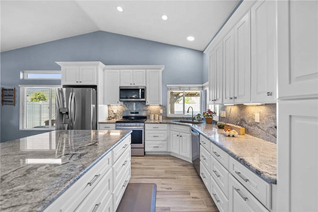 SINGLE STORY • CUL-DE-SAC • 3-CAR GARAGE • RV PARKING Imagine coming home to this ranch style home located on a West Murrieta cul-de-sac offering 4 bedrooms and 2 bathrooms with approximately 1,912 square feet of living space and on a 10,019 square foot lot. Built in 1991, the property includes a 3-car garage and RV parking with dedicated side yard access, concrete pad, and electrical hookup. Inside, the open floor plan begs for entertaining with vaulted ceilings, skylights, recessed lighting, and wood-look tile flooring throughout. The kitchen includes white shaker-style cabinetry, soft close drawers, granite countertops and backsplash, stainless steel appliances along with an expansive center island and adjacent dining area. The living room includes a fireplace, ceiling fan, and direct access to the backyard, while a separate front living area provides additional space for seating or flexible use. The primary suite includes vaulted ceilings, a ceiling fan, and direct access to an upgraded bathroom with dual sinks, updated cabinetry, and a walk-in shower with glass enclosure, bench seating, and tile finishes. Secondary bedrooms include ceiling fans and standard closets, with flexibility for guest rooms or office use. The secondary bathroom includes dual sinks, an updated vanity, and a shower/tub combination. Additional features include an interior laundry room with upper storage and direct garage access, a water filtration system, dual pane vinyl windows and slider, and a newer water heater. The backyard is so diverse in how it can be enjoyed from the two covered seating areas and above ground spa to the grassy area or the fenced garden area with raised garden beds and multiple fruit trees. And don't miss the shed and chicken coup! The block wall and vinyl fencing surrounds your oversized lot. Enjoy a stroll to the park at the back of the neighborhood or walk to Old Town Murrieta for a bite to eat or for Thursday market nights. This one is not to miss!