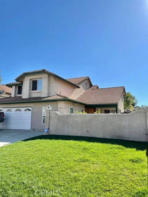 Beautiful Murrieta home with soaring ceilings and abundant natural light. Features include a spacious living and dining area, tile and wood flooring, and a functional floor plan with a downstairs bedroom. Enjoy a private resort-style backyard with pool, spa, and covered patio, perfect for entertaining. Peaceful front courtyard and prime location near schools, shopping, parks, and freeway access.