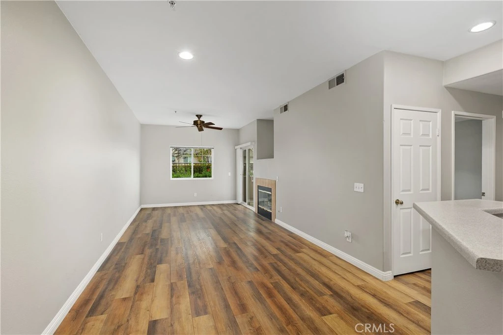 Back active as buyer could not perform-Welcome home to this beautifully located ground level 1-bedroom, 1-bath condominium tucked inside the quiet, gated community of Verona in Murrieta. This move-in-ready unit features newer luxury vinyl wood plank flooring and a thoughtfully designed kitchen complete with a stainless steel refrigerator. The spacious living area is anchored by a cozy fireplace and opens to a light-filled private patio—perfect for relaxing or entertaining. Enjoy the convenience of in-unit laundry with a stacked washer/dryer included, and retreat to the bedroom offering elegant coffered ceilings and a picture window overlooking serene greenery. A private one-car garage provides secure parking plus extra storage. Verona’s well-maintained amenities include a large pool and spa, fitness center, and barbecue areas, ideal for embracing the California lifestyle. Centrally located near shopping, services, and Temecula wine country, this home is ready to be yours!