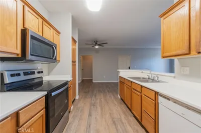 Welcome to this beautifully updated ground-floor, corner unit condo offering modern upgrades, a bright open layout, and low-maintenance living. Featuring brand new luxury vinyl plank flooring, fresh neutral paint, and all-new stainless steel appliances—including stove, dishwasher, microwave, and refrigerator—this home is truly move-in ready. A new stackable washer and dryer are also included, along with a brand new water heater for added peace of mind. The thoughtfully designed open floorplan maximizes space and natural light, creating a warm and inviting atmosphere. The living room features a cozy tile-framed fireplace and flows seamlessly into the kitchen, which offers wood cabinetry, stainless steel appliances, and ample storage. Down the hallway, you’ll find two spacious bedrooms and two bathrooms, including a primary suite with its own en-suite bathroom for added privacy and comfort. Go outside to your covered private patio—perfect for relaxing or enjoying outdoor dining. Located in the well-maintained Verona HOA community, residents enjoy access to a sparkling pool and spa, fitness center, and beautifully manicured grounds. This home combines style, comfort, and convenience in a desirable community setting.