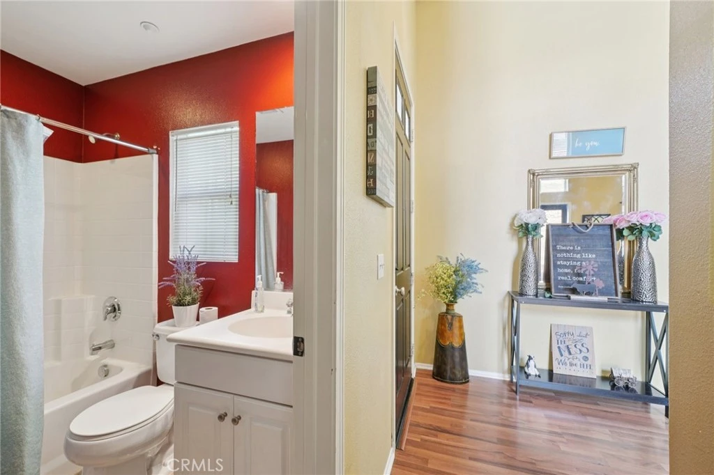 Welcome to Willow Haven, a sought-after gated community offering comfort, privacy, and convenience. This desirable end-unit condo features a rare private backyard and a spacious, thoughtfully designed tri-level floorplan with 1,976 sq ft of living space. Boasting 3 full bedrooms plus a versatile office and 3.5 bathrooms, this home offers flexibility for modern living. The downstairs office includes its own full bath, making it ideal for guests or easily convertible into a fourth bedroom. The main living area is filled with natural light and features French doors that open to a private side yard—perfect for entertaining, relaxing, or enjoying indoor-outdoor living. A formal dining room adds a touch of sophistication for gatherings. Next level up features an open-concept great room with a cozy fireplace that flows seamlessly into the kitchen, which is appointed with granite countertops, abundant cabinetry, and plenty of windows providing natural light. The top level hosts all three bedrooms along with a convenient laundry area. The spacious primary suite offers a true retreat with a large ensuite bathroom and a walk-in closet. Residents of Willow Haven enjoy resort-style amenities including a sparkling pool and spa, and playground. Ideally located near the 215 freeway, Loma Linda and Kaiser hospitals, and Mt. San Jacinto Community College, and also offers easy access to Temecula’s renowned wineries, shopping, and dining. Don’t miss this exceptional opportunity to own a private, end-unit home in a prime location!