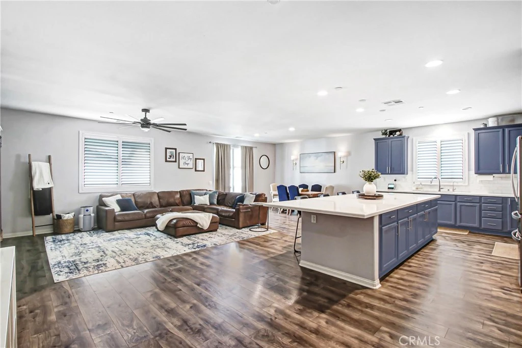 Welcome to this beautifully upgraded 4-bedroom, 3.5-bathroom home located in the highly desirable community of Murrieta. This spacious residence also features a private office with doors, easily convertible into a 5th bedroom—perfect for guests. Step inside to find elegant plantation shutters throughout and durable luxury vinyl plank (LVP) flooring in the main living areas, with plush carpeting in the bedrooms for added comfort. The heart of the home is the expansive, chef-inspired kitchen, complete with Corian countertops, an impressive 15-foot center island, custom cabinetry, soft-closing drawers, built-in trash bin, and a large walk-in pantry. Additional highlights include a single oven and a convenient double sink with touch feature—ideal for both everyday living and entertaining. The backyard is designed for relaxation and gatherings, featuring a covered patio with ceiling fans and shades, a gas line for outdoor cooking, low-maintenance vinyl fencing, and newly installed sod. The front yard offers attractive and water-efficient artificial turf. Additional upgrades include: 2-car garage with epoxy flooring, Tankless water heater, Tesla charging station, Water softener system, Paid-off solar system for energy efficiency and savings This home truly combines comfort, style, and sustainability—don’t miss the opportunity to make it yours!