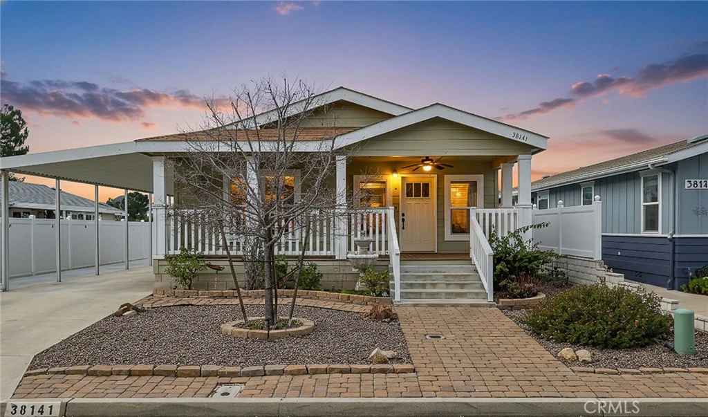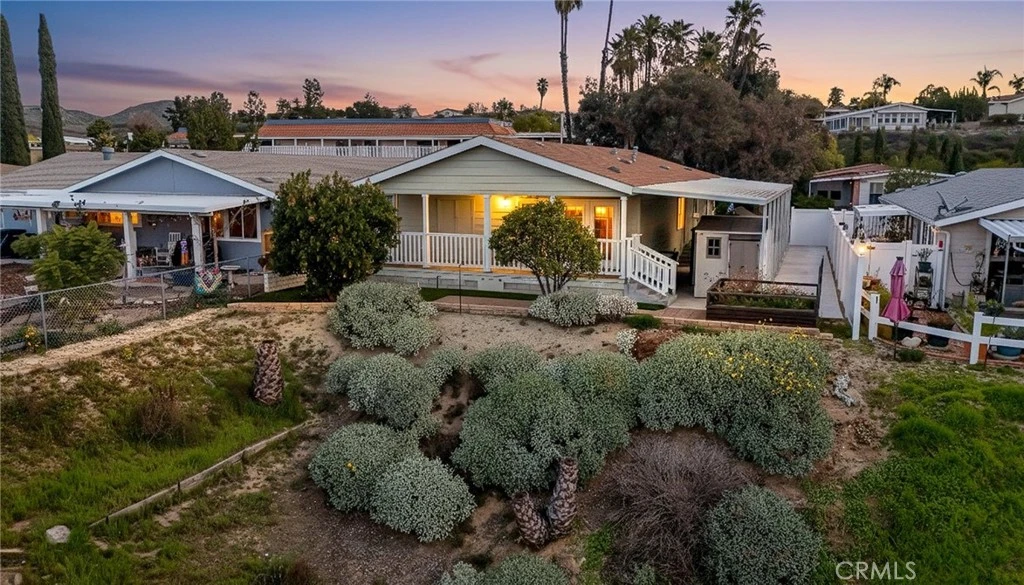 * VIEWS * CRAFTSMAN STYLE HOME * NO SPACE RENT * OWN THE LAND * Welcome to this charming 3-bedroom home in the sought-after 55+ Warm Springs Knolls community. The property is on a permanent foundation, offering added value and convenient financing eligibility. A rare opportunity to own a home offering panoramic views from an oversized, covered back patio located just off the primary bedroom. Walking up to the home, you’ll be greeted by wide front porch stairs that lead to an oversized covered front porch featuring a ceiling fan. Step inside to a bright, open great room that seamlessly blends the living space, kitchen, and dining area, accented with crown molding, window sills, a paneled ceiling, and engineered wood flooring. The kitchen offers a large island with convenient barstool seating, enhanced by custom pendant lighting, along with ample cabinetry, generous Corian counter space, a pantry, dishwasher, and microwave. Walking down the extra-wide hallway, you’re led to the light-filled primary bedroom, where gorgeous views are immediately showcased through French doors opening to an oversized covered back porch. The primary bedroom is highlighted by a pan ceiling, crown molding, a walk-in closet, and a ceiling fan. The primary bathroom features a Corian countertop, a soaking tub, and a separate shower. This home also offers two additional bedrooms and a convenient laundry/mudroom. Step out to the backyard from the covered back porch, where artificial grass creates a low-maintenance space and a spot is ideal for a table and chairs to enjoy canyon and mountain views. The backyard also includes a garden box for your planting enjoyment, vinyl fencing lines the sides of the home for added privacy. The property features a generous covered carport with an expanded slab for additional parking or workspace, with two storage sheds for extra storage. The Warm Knolls community features a clubhouse with a pool, spa, kitchen, library, outdoor BBQ, and dining room. Additional features include fire sprinklers and 6-inch walls for enhanced insulation. This is a must see custom designed home!