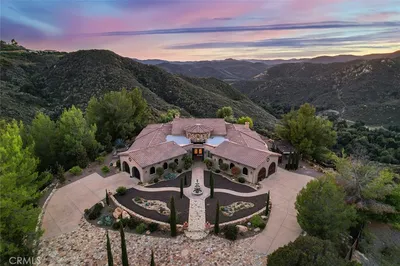 Welcome to 38150 Vía Huerta, a private, resort-style retreat nestled in the sought-after La Cresta community of Murrieta. Situated on 5 pristine acres with panoramic views of the mountains and city lights, this exceptional horse property offers the perfect blend of luxury, comfort, and functionality. From the moment you arrive, a gated entry and long, scenic driveway set the tone for the peaceful elegance that awaits. Inside, the home is filled with natural light and soaring ceilings that create a spacious, airy feel. Large picture windows frame breathtaking views and invite the outdoors in, while thoughtfully designed living spaces provide the ideal setting for both relaxation and entertaining. Inside, the oversized primary suite is a sanctuary of its own, complete with French doors opening directly to the pool and spa, and a spa-like bathroom with travertine finishes and dual vanities. A dedicated office and spacious guest bedrooms make this home as practical as it is beautiful. Step outside and you’ll find a true backyard oasis—an infinity-edge pool with waterfall features, a private spa, and a built-in BBQ area that’s perfect for gathering with family and friends. The covered patio and porch offer year-round comfort and are ideal for enjoying golden hour views over the valley. Equestrians will appreciate the 4-stall mare motel, corral, and miles of nearby horse trails. The property also includes a chicken coop, greenhouse, and an additional pad ready for fruit trees, a barn, or even a guest house. With 7 garage spaces, there’s no shortage of room for toys, tools, or a car collection. Whether you’re an entertainer, a hobby farmer, a horse lover, or simply looking for space to breathe, this one-of-a-kind estate offers it all.