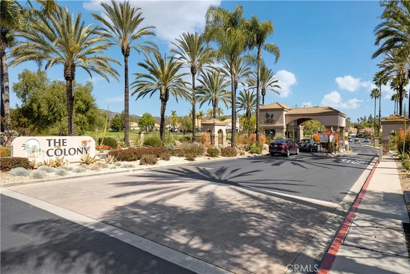 Discover resort-style living in The Colony, a 55+ community gem! Don't miss this RARE 2 bedroom PLUS office floor plan with no one behind you! Upon arrival, a private, gated entrance leads to a peaceful courtyard, wrapping around to the serene and private back patio featuring low maintenance, water-conserving plants and a “aluma-wood” patio cover with dimmable LED lights and an outdoor ceiling fan. Inside, an open floor plan is flooded with natural light through skylights and solar tubes, complemented by vaulted ceilings, recessed lighting, ceiling fans, and wood floors in the dining and living room. The addition of a warm fireplace and built-in cabinets creates a cozy and inviting living space. The updated kitchen showcases wood-grain tile flooring, modern appliances, and plantation shutters. Additionally, the cozy breakfast nook includes a built-in dining booth with storage. The hall bathroom, beautifully remodeled, showcases porcelain tile flooring, an inviting soaker tub/tile shower combo, a new vanity, upgraded accessories, and enhanced natural light with a solar tube. The master suite is a retreat with wood floors, vaulted ceilings, a ceiling fan, built-in storage, plantation shutters, walk-in closet, and an upgraded bathroom with porcelain tile flooring, granite countertops, a walk-in shower, plantation shutters, and a storage window seat. The second bedroom features LVP flooring, plantation shutters, a remote-operated LED ceiling fan, and a walk-in closet. A rare additional office offers wood flooring, built-ins, a vaulted ceiling with a skylight, and a door leading to the patio with a retractable screen door. The garage is equipped with LED lighting, ample built-in storage, and a pull-down attic door for additional storage. Embrace sustainable living with solar power, ensuring low monthly payments, dual pane windows, and an energy efficient whole house fan. Dual-pane windows throughout! The Colony is a guard gated community with many amenities including pools, organized activities, clubs, tennis, golf, and more! 40370 Via Francisco; You Will LOVE Living Here!