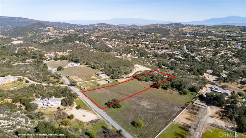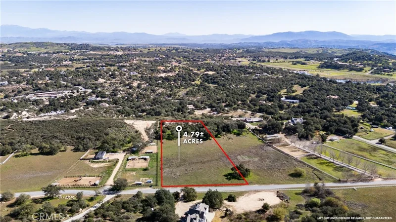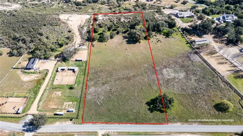 Nestled within the serene landscapes of La Cresta Highlands POA, the vacant lot at 41560 De Anna Ranch Road in Murrieta presents an unparalleled opportunity to build your dream home on 4.79 acres of picturesque land. This exquisite parcel offers a mostly flat terrain with a row of ancient oak trees lining the base of a slight elevation towards the back, creating a perfect canvas for a home with majestic views overlooking the lot and the surrounding countryside. The beauty of this lot is enhanced by its direct access to an equestrian trail that runs gracefully along one side and the back of the property, connecting to miles of trails ideal for horseback riding, hiking, or leisurely walks in nature. This feature alone makes it a coveted spot for those who cherish outdoor activities and the equestrian lifestyle. Additionally, with water, electric, and phone lines readily available on De Anna Ranch, and essential groundwork such as grading plans and a percolation test already completed, the lot is primed and almost ready for the construction of your dream residence. One of the most compelling aspects of this property is its versatility. The spacious and mostly flat terrain offers ample room for not just a custom home but also a barn, RV garage, or other outbuildings to suit your lifestyle needs. Whether you dream of a sprawling estate with a backyard oasis or a cozy retreat with room for your hobbies and passions, this lot is a blank slate ready to bring your vision to life. Located on a quiet, paved street, this property offers the perfect balance of peaceful country living and convenience. Just a short drive from Interstate 15, residents will find themselves within easy reach of fine dining, shopping, and the enchanting Temecula Wine Country. Moreover, the unique positioning in the foothills between Orange County and Murrieta Valley ensures cool coastal breezes that temper the warm California sun, creating an idyllic climate year-round, perfect for a vineyard! Imagine building your dream home at 41560 De Anna Ranch Road, where every day is a blend of country charm and luxury living, all while being conveniently within an hour’s drive to the coast, mountains and desert. This is more than just land; it's the foundation for your future, wrapped in the beauty of Murrieta and awaiting your personal touch.