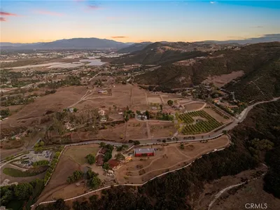 **LARGE PARCEL WITH EXISTING AND EXTENSIVE INFRASTRUCTURE** Rare 10+ acre parcel opportunity on Murrieta’s coveted West Side with expansive views and highly usable land. Extensive infrastructure is already in place to support your vision and the potential broad range utility of the land. All structures are permitted and complete. Includes two cottages ideal for an onsite caretaker or ranch hand, finished open-air barn with 2 large roll-up doors and wood-burning stove, and a 5,000 sq ft insulated Empire Steel building (50'x100') with loft storage, private office, and 2 large roll-up doors—ideal for equipment, workshops, storage, or agricultural operations. Designed for outdoor living, agriculture, and self-sufficiency potential, the fully fenced property is ideal for potential equestrian use, farming, homesteading, or creating a private family compound. The land features 71 producing orange trees along with lemon, avocado, guava, fig, apple, pear, loquat, and pomegranate trees, creating an established orchard environment with room to expand. 400-amp electrical service, private septic, private well, two elevated 5,000-gallon water storage tanks, and a 4” fire line at the entrance gate. The property is all-electric with no propane or natural gas. Fully paid solar. Fully fenced with 5-ft vinyl rail and woven horse fencing for security and livestock. Extensive usable acreage offers untapped potential for expanded equestrian facilities, additional residences, a multi-generational compound, retreat property, hobby property, or further agricultural development. Please see supplements page for more details. Also listed for sale as residential property ID: SW26055790 Showings by appointment only. Red building photo digitally edited to remove items and to show full size and potential use/storage.