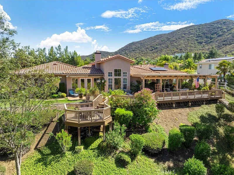 Welcome to 42926 Joshua Tree Court – where luxury, and lifestyle meet. This stunning single-story home sits on a premium lot in the highly sought-after gated community of Olive Hill Ranch Estates in Murrieta’s quiet west side. Tucked away in a peaceful cul-de-sac, the property offers incredible views of surrounding mountains and a sense of seclusion. You will enter through a lovely courtyard with an outdoor fireplace and through beautiful iron and glass double doors. Inside, you will be delighted with the open floor plan that is designed for both comfort and functionality. The heart of the home is the spacious great room with a chef’s kitchen, perfect for entertaining and everyday convenience. This well-appointed kitchen features granite countertops, stainles steel appliances, built-in fridge, a large center island, a walk-in pantry, a butler’s pantry, and insta hot water. Additional features include a formal dining rooom, living roon, den, laundry room, mud room with courtyard and garage access, and a museum-quality 3-car garage outfitted with custom cabinetry and durable coated floors. The home is also energy-efficient with 32 fully owned solar panels. The primary suite opens to its own patio where you can enjoy some quite time. The primary bath has a large soaking tub and spacious walk-in shower. One of the secondary bedrooms has a full bathroom attached. Step outside to your private backyard retreat with a large, covered patio and deck extension, dual ceiling fans, built-in misting system, fire pit, above-ground spa, built-in BBQ kitchen, and outdoor TV setup—perfect for morning coffee, summer nights, parties, and Sunday football gatherings. Outdoor enthusiasts will appreciate the nearby Santa Rosa Plateau with trails for hiking or mountain bike riding. Additionally, there is a nearby equestrian center to board your horse or keep in on your property in the expansive lower area. Good times are to be had at nearby Old Town Murrieta and Temecula’s world-class wineries. This home is more than just a place to live—it’s a lifestyle. Come see for yourself why 42926 Joshua Tree Court is truly one of a kind.