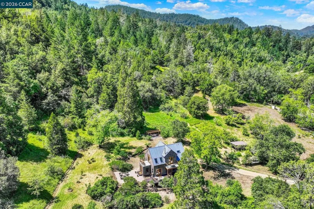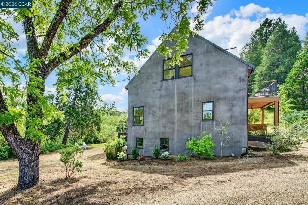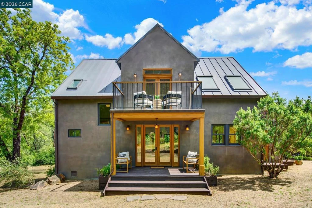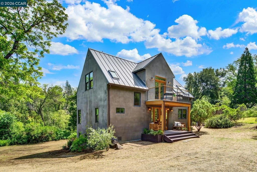 Tucked behind a bubbling brook and framed by the gentle roll of Napa's western hills, 4009 Redwood Road is the kind of property that stops you the moment you arrive. A steeply pitched metal roof, warm wood entry doors, and a soft gray stucco exterior give the home a presence that feels both striking and completely at ease in its surroundings. Originally built in 1910, this cherished home has been lovingly and meticulously reimagined from the foundation up, blending early 20th-century soul with the ease and quality of modern living. Every layer of the home has been thoughtfully renewed, from the roof, systems, and infrastructure to the kitchen, baths, and finishes, with no detail overlooked. One glorious exception remains: the original Douglas fir floors, rich with patina and history, still grace the home just as they did more than a century ago. Upstairs, two generous bedrooms and a den all open onto their own private balcony, a rare and wonderful detail that brings the outdoors in and makes waking up here feel like a small luxury every single morning. A spacious shared bath and laundry complete the upper floor. Downstairs, a third bedroom and full bath provide flexibility for guests or comfortable everyday living on one level. The offering includes the main residence on 3.59 acres, with the opportunity to also purchase the adjacent 4009A Redwood Road (4.35 acres), featuring its own three-bedroom, two-bath home, ideal for a caretaker, extended family, rental income, or a guest retreat. A separate 15.57-acre adjoining parcel is also available, offering extraordinary potential for a vineyard, equestrian property, private compound, or simply the rare luxury of open land. Properties like this do not come along often. Come see it for yourself. Views: Ridge