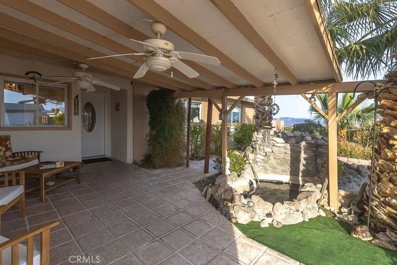Beautifully maintained 3-bedroom, 2-bath home with a bonus room and sunroom, perfectly situated on a desirable corner lot with sweeping desert views. Step inside to a spacious layout featuring a large dining area ideal for entertaining and everyday living. The generous primary suite offers a relaxing retreat with a sizable walk-in closet and private bath. Enjoy indoor-outdoor living with a sunroom that fills the home with natural light. The beautifully landscaped backyard is designed for low maintenance while still offering plenty of space to relax or entertain. Out front, striking desert landscaping is enhanced by a tranquil waterfall feature, creating instant curb appeal. Located just minutes from the Colorado River, this home combines comfort, style, and a peaceful desert setting—perfect as a full-time residence or weekend getaway.
