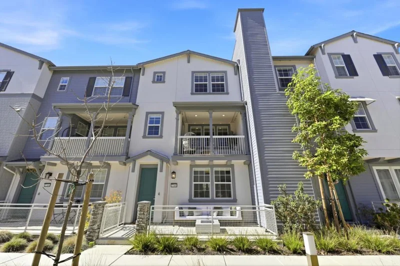 Located in Newarks Bridgeway Community, this four-year new, 2,109 sq ft, four-bedroom, three and a half bath townhome-style condo is thoughtfully designed and exudes elegance. Built by nationally renowned builder, Lennar, this property features a smart, three-story layout including a flexible first-floor bedroom with full bath and walk-in closet. The middle level presents a modern open layout, seamlessly connecting the sun-filled, gourmet kitchen, dining, and living rooms. Additional features on this level include a newly remodeled half bath plus a full-size walk-in pantry. Upstairs, discover three additional bedrooms, highlighted by a luxurious owner's suite, two full baths and laundry closet complete with full size washer/dryer. Residents benefit from a two-car attached garage and exclusive community amenities such as a clubhouse, swimming pool, spa, playground, and dog park. Additional features include luxury vinyl plank flooring throughout excluding stairs, seller owned solar panels, upgraded tile flooring in primary bath, electric fireplace and custom mantle and EV charger outlet in garage. The location provides easy freeway access to I-84/I-880, major employers including Google, Meta, Tesla, and Stanford, plus local shopping, diverse dining options, and nearby trails/parks.