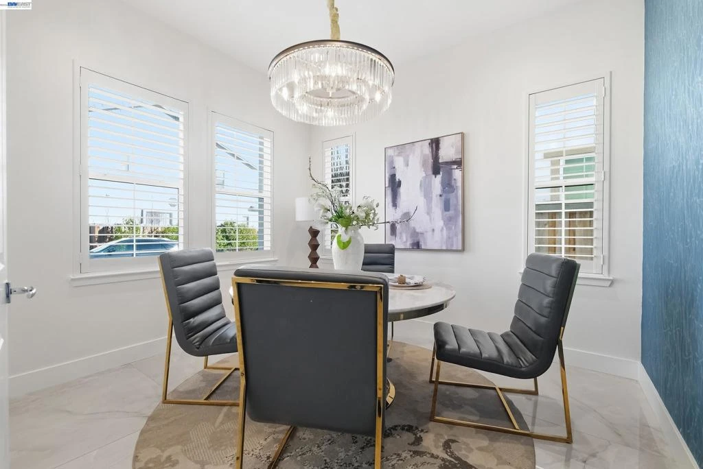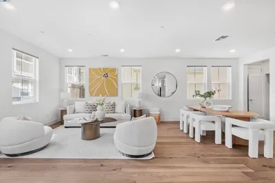 Stunning EAST-FACING modern home offering ~3,585 sq ft of elevated living with 5 beds and 5.5 baths. A rare, highly sought-after layout features a private executive office and versatile upstairs bonus room. Soaring 10-ft ceilings and walls of natural light create a bright, airy ambiance, while a dramatic 12-ft stacking glass door opens to a covered patio for seamless indoor-outdoor living. Main level en-suite bedroom ideal for guests or multigenerational living. Upstairs, retreat to a luxurious primary suite with spa inspired bath, soaking tub, dual vanities, and a walk-in closet with direct laundry access. Chef’s kitchen showcases quartz countertops, ceiling height cabinetry, and premium appliances. Designer finishes include porcelain tile flooring, recessed LED lighting, and custom built-ins. 3-car tandem garage with EV capability. Energy-efficient with owned Tesla solar, 2 zone HVAC, tankless water heater, and water softener. Prime location near parks, top schools, Pacific Commons, and major commute routes.