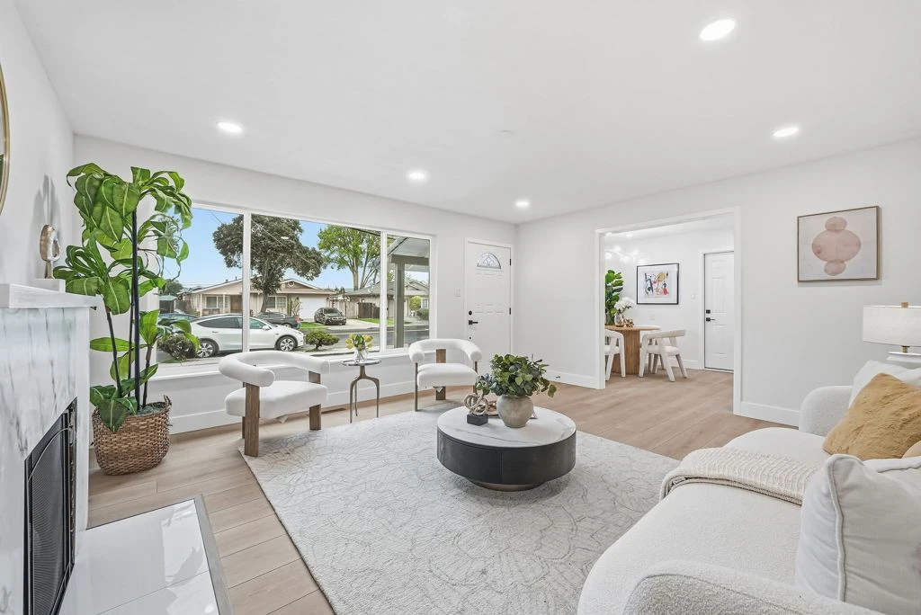 Welcome to this fully renovated north facing gem in the heart of Newark, offering modern upgrades, everyday convenience, and an unbeatable location. Step inside to an inviting open floor plan featuring luxury vinyl flooring, fresh interior and exterior paint, a cozy fireplace, and large windows that fill the home with abundant natural light. The beautifully remodeled kitchen showcases sleek cabinetry, quartz countertops, stainless steel appliances, and a built in microwave - perfect for both daily living and entertaining. Both bathrooms have been tastefully updated with contemporary finishes. Enjoy California living at its best with a spacious front porch and newly landscaped backyard, complete with a cozy patio area ideal for relaxing or hosting gatherings. Conveniently located just minutes from Tesla charging stations and within walking distance to supermarkets. Commuters will appreciate quick access to I-880, the Dumbarton Bridge, and BART for easy travel throughout the Bay Area. Move in ready and thoughtfully upgraded, this home is a rare opportunity you won’t want to miss.