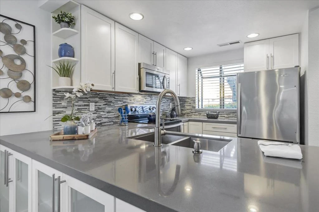 Imagine waking up in this beautifully renovated 2-bedroom, 1.5-bath townhome. Natural light pours into the spacious end-unit, where every detail has been thoughtfully upgraded. You will love cooking in the modern kitchen, featuring quartz countertops, a stylish backsplash, and stainless-steel appliances, while hardwood floors and designer tile add a touch of elegance throughout. After a long day, relax on your private patio or take advantage of the resort-style amenities. Swim in one of the sparkling pools, unwind in the spa, or get active on the tennis courts, in the exercise room, or at the community clubhouse. Living here, convenience is everything. With Costco and the recently renovated Newpark Shopping Mall less than a mile away, weekend errands and dining are a breeze. Need to commute? Public transportation and Highway 880 are moments from your doorstep. From the upstairs laundry to the HOA covering water, sewer, and garbage, life in this move-in-ready home is simple, stylish, and serene. Come experience it for yourself!