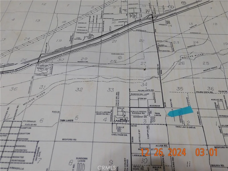 Nice 10.32 acre parcel located on Harvard Rd in Newberry Springs. The property is on the NW corner of Harvard Rd & Derwent Rd. Dimensions of the lot are approximately 340 feet' on Harvard Rd by 1320 feet on Derwent Rd. Electric power lines run down the west side of the property. Buyer would need to check with the Electric Company to verify availability. Homes in the area require their own well and septic system. Directions: From Barstow, head east on I-15 to the Harvard Rd Exit in Newberry Springs. Turn right on Harvard Rd. At approx 3.5 miles, the pavement will end but continue on the dirt part of Harvard Rd for 1/4 mile you will be at Derwent Rd which is the south line of the Subject property.