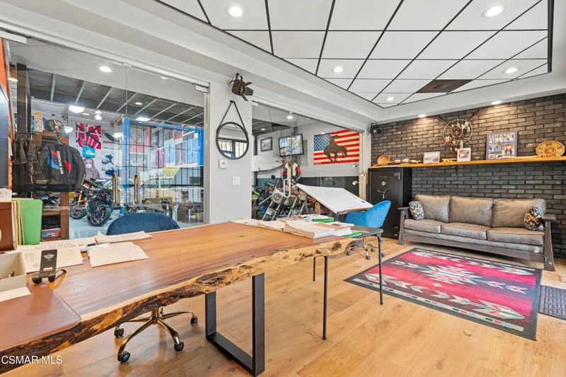 Rare opportunity to own a fully upgraded industrial car condo in the heart of Newbury Park, designed specifically for the serious collector or automotive enthusiast. This turnkey unit is the ultimate private showroom and storage space, thoughtfully built out with premium finishes and an expanded mezzanine to maximize functionality and style.The main level offers pristine, open warehouse space ideal for showcasing and storing your collection. High ceilings and clean architectural lines create a true gallery feel, while upgraded lighting highlights every detail of your vehicles. The expanded mezzanine adds significant usable square footage and features a private office overlooking the showroom floor, allowing you to work while enjoying a full view of your collection below.A full bathroom with shower and custom bar setup elevate the space beyond simple storage, making it perfect for entertaining, hosting private gatherings, or spending extended time on-site. Every detail has been completed, making this unit completely move-in ready with no additional buildout required.Whether you are a collector seeking a secure and sophisticated home for your cars, a business owner looking for a high-end automotive workspace, or an investor targeting a niche asset class, this Newbury Park car condo delivers versatility, style, and long-term value.A true car collector's dream and a rare offering in one of Ventura County's most desirable industrial communities.