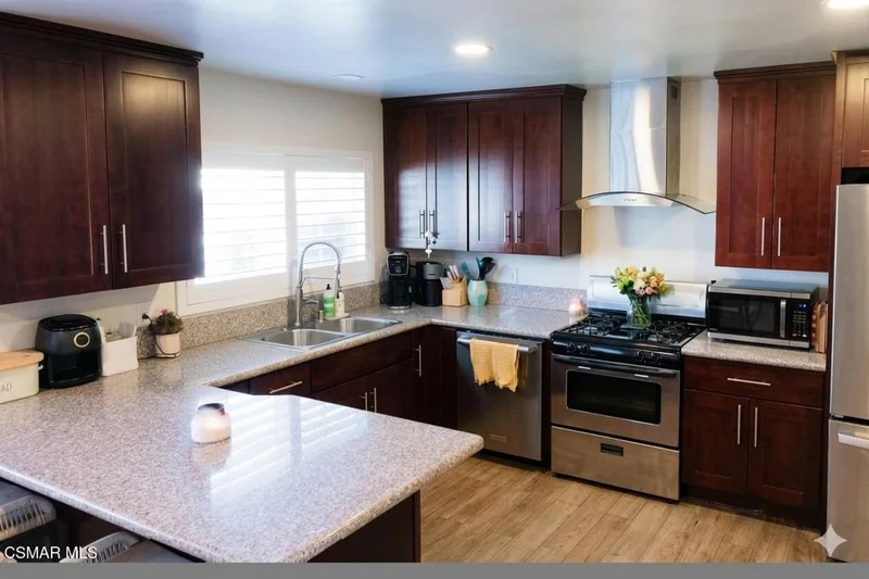 Pictures will be up by Friday March 20, 2026 . First showing: March 22, 1:00PM to 4:00PM. All you need to do is pack and move in! This nicely done 4-bedroom, 2-bathroom home in Newbury Park offers a clean, modern aesthetic and a highly functional open floor plan. The heart of the home is a tastefully renovated kitchen that flows directly into the living and dining areas, creating a welcoming space for daily life. This home is conveniently located just minutes from local shopping centers and sits within a distinguished school district, making it as practical as it is charming.The entertainment-ready backyard is a true private oasis designed for making memories. Imagine spending your weekends lounging by the sparkling pool or hosting a BBQ for friends and family seating under the fanned covered patio. All while taking in the serene, unobstructed mountain views. For those who love the outdoors, you are just a short distance from world-class hiking trails, offering endless adventures right in your backyard.Situated on a large cul-de-sac lot, the property provides plenty of privacy and room for all your toys with rare, sought-after RV access and a 2-car attached garage. Major technical upgrades have already been handled for you, including a new roof (2020), a new water heater, updated bathrooms, and a solar system for energy efficiency. If you are looking for a well-maintained, updated home in a prime location with a backyard built for fun, this is the one!