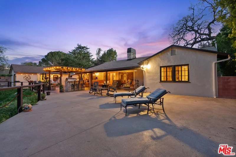 Welcome home to this charming cottage featuring 2 bedrooms and 2 bathrooms, plus a private en-suite detached guest house perfect for visitors, extended family, or potential rental income. Thoughtfully updated with newer plumbing and windows, this home blends modern convenience with timeless character. Step inside to vaulted ceilings and an open floor plan centered around a stunning three-sided stone fireplace that creates a warm and inviting focal point for the living spaces. The vintage kitchen with original Thermador appliances adds nostalgic charm while offering great functionality and flow for everyday living and entertaining. Both bathrooms in the main house have been beautifully remodeled, and wood-look tile flooring runs throughout, adding durability and incredible style. The detached guest house includes a full bathroom and is ready for a kitchen addition, offering endless possibilities. Additional highlights include a 2-car garage connected by an amazing breezeway, perfect for relaxing afternoons, and a large lot with a built in BBQ, fire-pit and room to expand, garden, or entertain. Warm, charming, and relaxing best describes how you will live here.