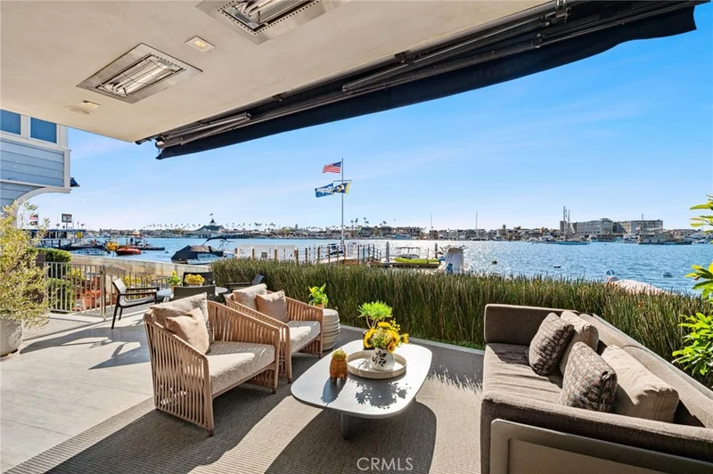 Stunning, State-of-the-Art Waterfront Residence with Dock, spanning over 2,600 square feet, and incomparably located on the idyllic Quiet End of Balboa Island. This pristine home is a modern masterpiece, built in 2018 as a collaboration between Chuck Van Cleve and CJ Light Associates, with no expense spared and exceptional attention to detail throughout. Exquisitely designed by DISC Interiors, the home blends modern architecture with warm, livable interiors. Wood, concrete, stone, steel, and glass are innovatively combined into clean lines and geometric shapes, providing endless opportunities to enjoy the abundant natural light and spectacular views on all three levels. Visitors are greeted by a wall of glass doors opening to the large, elevated front patio, featuring lush vegetation, outdoor heaters, and integrated speakers. The open floor plan of the first level provides a seamless flow from the tranquil great room with fireplace, through the dining area overlooking a scenic fountain, to the impeccably outfitted chef’s kitchen. The second level features a luxurious primary retreat with spa-quality bathroom, expansive walk-in closet, and private balcony with an unforgettable Harbor view. Completing the second level are two ensuite bedrooms with custom closets, and a well-equipped laundry room. The crowning jewel of the home is the 3rd-level roof deck, a true entertainer's oasis. Designed for year-round enjoyment with both covered and uncovered spaces, full bar with appliances and seating, firepit, bbq, jacuzzi, two televisions, bathroom with shower, and a spectacular 360-degree view. Additional features include a convenient ELEVATOR to all three levels, Control4 whole-house automation system, fully equipped finished garage with plentiful storage and wine fridge, and a brand-new shared dock with private boat slip and seating. 304 South Bayfront is contemporary design at its very best, a perfect opportunity to experience luxury Coastal living in an unparalleled location.