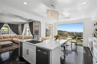 This exquisitely remodeled 2025 residence in the prestigious guard-gated community of Coastal Canyon has been completely reimagined with white oak floors, Taj Mahal quartzite countertops in the kitchens and bathrooms, new soft-close cabinetry, professional stainless steel Wolf appliances, a Sub-Zero refrigerator, upgraded lighting, and full repiping, alongside beautifully refreshed landscaping and hardscaping. Spanning approximately 4,000 square feet, the home offers 5 spacious bedrooms, 4.5 bathrooms, a dedicated office, and a versatile bonus room. A main floor ensuite bedroom provides comfort and convenience for guests, while upstairs you’ll find four additional bedrooms, including a stunning primary suite with a spa-like bath and sweeping views of the coastline. At the heart of the home, the chef’s kitchen has been fully updated with Taj Mahal quartzite surfaces and flows seamlessly into the sizable family room and media center, designed for effortless entertaining and relaxed everyday living. The rear yard wraps gracefully around the home, creating multiple outdoor living spaces that showcase stunning views of the Pacific Ocean, San Clemente Island, and Laguna Beach. Additional highlights include a two-car garage plus a separate space for a third car or storage. As a resident of this exclusive enclave, you’ll enjoy premier amenities—private pool, spa, clubhouse, tennis and basketball courts—moments from Crystal Cove Beach, Pelican Hill Resort, scenic hiking trails leading directly to the Pacific Ocean, and world-class dining & shopping. This property is a rare opportunity to own a move-in-ready, fully remodeled ocean-view home in one of Newport Coast’s most sought-after neighborhoods.