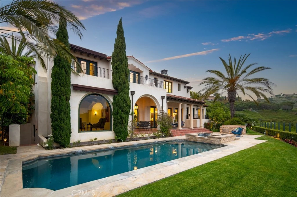 Nestled serenely on the front row, this extraordinary estate commands an elevated position, gifting panoramic vistas that stretch across the expanse of the Pelican Hill Golf Club and beyond, where the azure ocean meets the sky. Encompassing over 7,900 square feet of opulent living space, this residence is a testament to boundless luxury with a distinctive coastal essence. Set within the prestigious confines of an around-the-clock guard-gated community, this property ensures the utmost privacy and security. Adding to the allure is the convenience of an elevator, seamlessly connecting all three levels of the residence. A picturesque embodiment of resort-style living, the custom design of this remarkable home encompasses 5 lavish Bedrooms, 7 Full Bathrooms, and 2 Half Bathrooms. The grandeur is accentuated by the presence of a separate front casita, offering privacy and versatility. A tranquil private courtyard welcomes you, setting the tone for the lavish experience within. The outdoor expanse unveils an oasis of relaxation, complete with a glistening pool, an invigorating spa, and a barbecue area where al fresco dining is an art form. The sweeping views of the golf course merging with the vast ocean create an ever-changing backdrop, enriching each moment spent here. This residence is a symphony of indulgence, exemplified by its offerings of a subterranean 6-car parking garage spanning 1,300 square feet, an upper-level direct access 2-car garage, a wine room for connoisseurs, an intimate theater for cinematic experiences, a well-equipped gym for wellness pursuits, and a soothing sauna for moments of respite. Drawing inspiration from the famed architect Wallace Neff, the residence exudes an air of timeless elegance. Graceful archways and hand-carved beam ceilings adorn the interior, while hand-fired terra cotta flooring graces the floors, each element meticulously chosen to define luxury living. Set within the renowned 504-acre enclave of Pelican Hill®, this home enjoys privileged access to a world of unrivaled coastal beauty. A sanctuary of privacy and seclusion, this community is a testament to refined living, offering a retreat where family and friends gather to create lasting memories. Seize the opportunity to live amidst architectural excellence, surrounded by lush landscaping, and awaken each day to unparalleled vistas. This estate represents the epitome of luxury living, where classic sophistication meets the tranquil allure of coastal living.