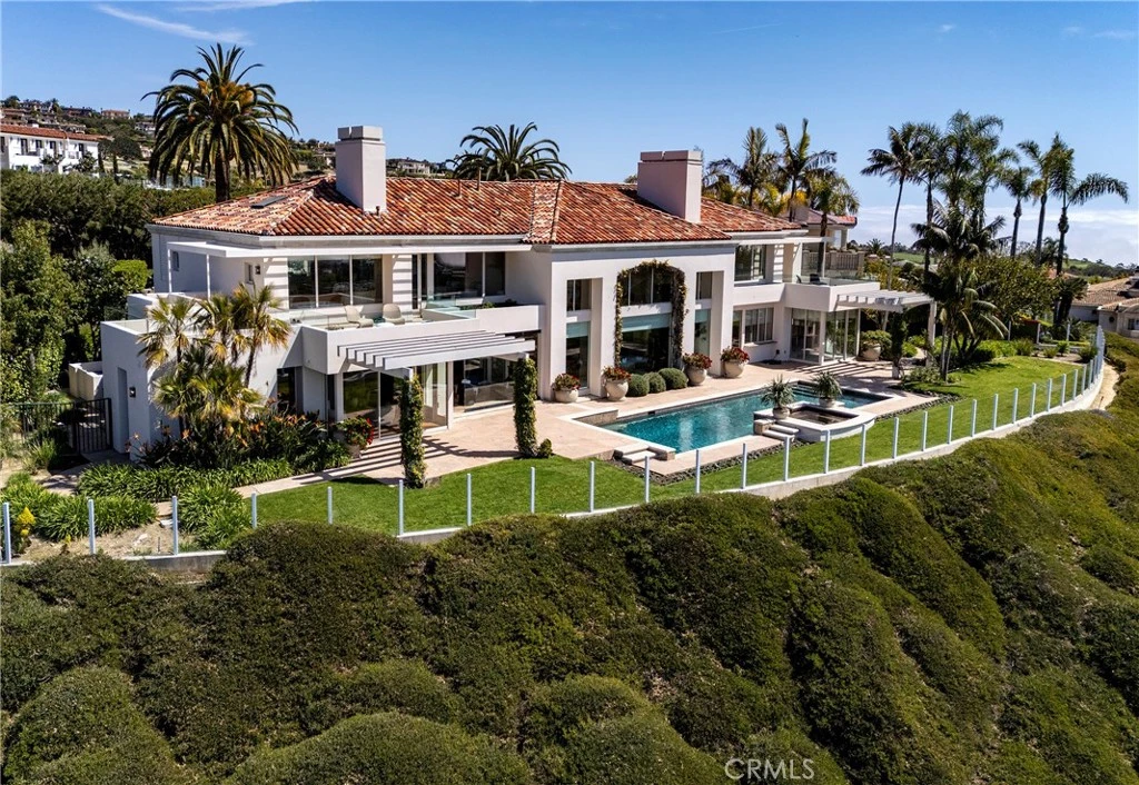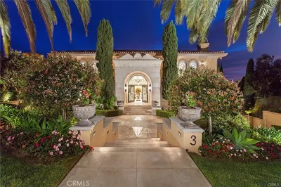 Commandingly positioned at the point of one of Pelican Hill’s most coveted view lots, this custom estate boasts an extraordinarily rare 200 feet of uninterrupted frontage capturing breathtaking white water vistas down the California coastline, past the glistening lights of Newport Harbor, and stretching to the Palos Verdes Peninsula framed by year-round sunsets and Catalina Island resting on the horizon. Set within the prestigious 24/7 guard-gated community of Pelican Hill in Newport Coast, this rare soft contemporary residence offers a refined architectural expression seldom found in the area. The estate’s elevated orientation at the end of a promontory ensures exceptional privacy and arguably the finest view vantage in the neighborhood. Inside, the home presents a thoughtful floor plan highlighted by two grand primary suites upstairs, each with dedicated stone-clad spa-like bathrooms, generous wardrobes, and unmatched coastal panoramas. An elegant spiral staircase anchors the great room, which opens through expansive walls of glass to the rear grounds where an illuminated pool and manicured landscaping merge seamlessly with the horizon beyond. A grand fireplace adds warmth and sophistication to the view-centric living space. The formal dining room that flows to a covered and enclosed outdoor dining and lounge area. The kitchen is richly appointed with exquisite full-slab stonework, an open-concept breakfast nook, and adjacent living space, creating a perfect balance of luxury and functionality. Additional highlights include a main-level guest suite, a lounge/library, a massage and salon suite, and a spacious subterranean level featuring a game room, multiple flexible living areas, and additional bedroom and bathroom accommodations. The estate also boasts an expansive subterranean garage and exceptional storage throughout. A gated, on-grade motor court and central entry fountain welcome guests into a lushly landscaped front courtyard, while mature plantings enhance the serenity and privacy of the property’s outdoor living spaces. Representing one of the most significant land parcels in all of Pelican Hill for both orientation and panoramic frontage, this estate presents a rare opportunity to personalize a dream residence in a location that defines world-class coastal living.