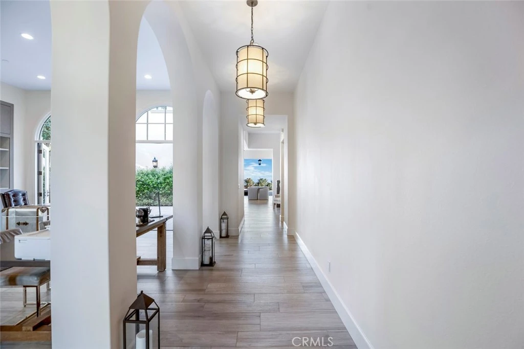 Ocean views, a private-entry guest suite, and over 5,400 square feet behind the guard gates of Pacific Ridge. This upgraded Fiano residence blends coastal luxury with rare flexibility, now featuring a newly added main-level ensuite with kitchenette and newly installed white oak flooring throughout the upper level. Offered furnished or unfurnished, the home captures unobstructed views of the Pacific Ocean and is ideally positioned at the end of a cul-de-sac overlooking thousands of acres of preserved canyons and rolling hillsides. Thoughtfully designed, it offers 5 bedrooms and 5.5 bathrooms, including a private-entry main-level suite ideal for guests, extended family, or live-in support. Upstairs, four additional ensuite bedrooms are complemented by a spacious bonus room with its own balcony, perfect as a media room, office, or lounge. Wide-plank white oak floors add warmth and a clean, modern finish throughout. The main level is centered around a light-filled great room with soaring ceilings and seamless indoor-outdoor flow through retractable glass doors. A sleek fireplace anchors the space, opening to the dining area and chef’s kitchen with a large center island and premium appliances. Outdoor living is designed for both relaxation and recreation, featuring multiple covered and open-air patios, a colosseum-style jetted spa/plunge pool, and a private basketball court, creating a true resort-style setting. The primary suite offers a private ocean-view balcony and a spa-inspired bath with soaking tub, walk-in shower, dual vanities, and an oversized walk-in closet. Enjoy direct access to miles of hiking, biking, and riding trails leading to Crystal Cove and beyond, all just minutes from world-class beaches, Pelican Hill Resort, top-rated schools, and Fashion Island. Pacific Ridge amenities include a Jr. Olympic saltwater pool, spa, wading pool, clubhouse, multiple tot lots, an adjacent sports park, and expansive greenbelts.