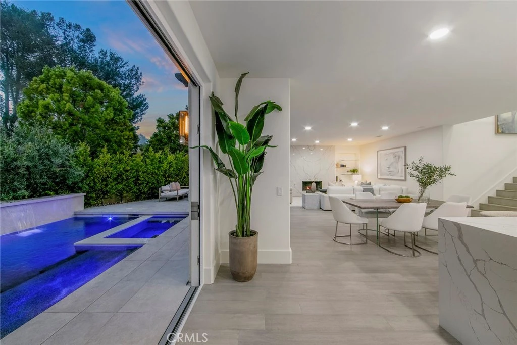 Located within the custom gates of Newport Coast’s premiere 24 hour gaurd gated private community, Pacific Ridge. This fully upgraded bespoke residence combines modern sophistication and casual elegance, offering a coveted turnkey opportunity within the guarded gates of Pacific Ridge at Newport Coast. Set on a nearly 7,400 SF cul-de-sac lot, this two-story home features four bedrooms, three-and-one-half remodeled baths, and a grand entry with a graceful staircase. The formal dining room includes a 400-bottle temperature-controlled wine wall. The approximately 3,500 SF home showcases a soothing white palette with custom crown molding, contemporary lighting, and distinctive archways. The main level includes a living room with surround sound and a corner fireplace, leading to a brand-new kitchen with an island, bar seating, butler's pantry, built-in desk, quartz countertops with full tile backsplash, walk-in pantry, and high-end stainless steel appliances. A bedroom and half bath complete the main level. Wide-plank white oak wood flooring adorns the main floor, with carpet and tile on the staircase and second level. Upstairs, secondary bedrooms share a spacious covered balcony, while the primary suite offers a plush retreat with a fireplace, bay window, infrared therapy light system with 6,000 watts of soothing LED power, and a backlit boutique-like walk-in closet with custom built-ins. The suite also includes a soaking tub, separate steam shower, and a sit-down vanity. The attached three-car garage leads to a long driveway with a custom finish. Resort-caliber grounds include a private courtyard with a fountain, a saltwater pool and spa, waterfalls, fire pit, custom fireplace, poolside bar, and built-in BBQ bar. Discover the perfect blend of comfort and style in this exceptional Newport Coast home, designed for relaxed and elegant living.