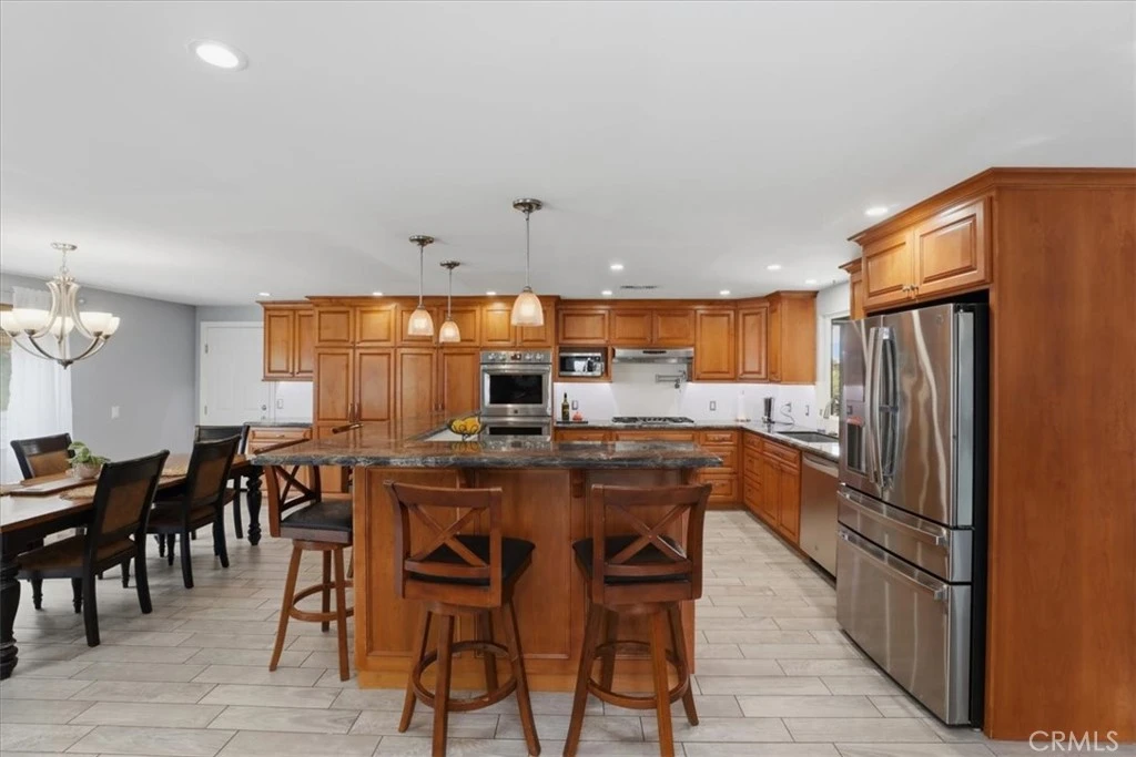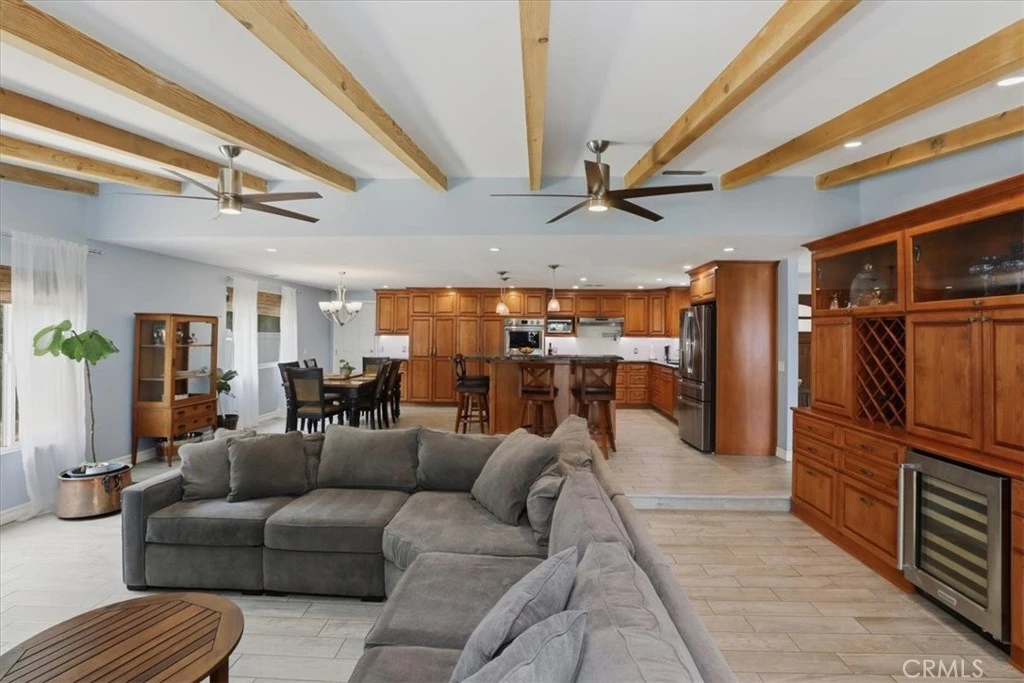 Tucked away on the desirable Bluffs side of Norco—famously known as Horsetown USA—this beautifully remodeled 4-bedroom, 2-bathroom home offers the perfect blend of modern comfort and country charm, all set on an expansive, serene lot that is almost an acre with stunning mountain views. Step inside to discover vaulted, beamed ceilings that create an open, airy feel throughout the home. The thoughtfully updated interior is highlighted by an expansive chef’s kitchen that flows seamlessly into a spacious open-concept living area—creating one large, inviting space perfect for entertaining, gathering, and staying connected with family and guests. The kitchen features sleek granite countertops, a stylish Corian backsplash, and upgraded stainless steel appliances, including double ovens. Custom cabinetry is abundant, offering exceptional storage with convenient pull-outs. A large breakfast bar, accented by beautiful designer lighting, serves as a welcoming centerpiece. The open living area is warm and inviting, complete with a beautiful corner fireplace, tile flooring, and a custom wine feature—ideal for relaxing or hosting. Natural light flows throughout, enhanced by solarium lighting in the hallway. All bedrooms are generously sized, providing comfort and flexibility. The primary suite offers a private retreat with a walk-in shower, custom vanity, upgraded lighting, and sliding glass doors with integral blinds. Step outside to your covered back patio and take in the peaceful surroundings. The backyard is designed for both relaxation and functionality, featuring an above-ground pool with a spacious wraparound deck, garden areas, and plenty of open space to enjoy. Equestrian amenities include two horse stalls with a tack room, along with water and lighting in the horse area, plus a large turnout attached to the stalls—perfect for horse enthusiasts. Additional highlights include RV parking with a 30-amp hookup and a prime location overlooking the river, offering beautiful, tranquil views. This is a rare opportunity to own a turnkey, horse-friendly property in one of Norco’s most sought-after neighborhoods.