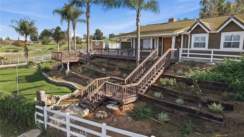 Beautifully upgraded view home located in the prestigious Norco Hills. Designed for both entertaining and everyday comfort, this home features an open floor plan and a desirable dual primary suite layout. Upon entry, you’re greeted by a stunning gourmet kitchen that sets the tone for the rest of the home. Custom features include separate living, family, dining, and laundry rooms, offering exceptional functionality and space. The family room showcases an immaculate fire glass fireplace—perfect for relaxing after a long day. The primary suite is truly impressive, featuring beautiful wood ceilings, a spacious walk-in closet, and a fully remodeled spa-like bathroom. The primary bath includes lighted vanity mirrors, a custom glass-enclosed tiled shower, high-end fixtures, a dual vanity with a seated makeup station, and a luxurious jetted tub. The second primary suite is conveniently located on the opposite side of the home and includes its own private ensuite bathroom—ideal for guests or multi-generational living. Two additional generously sized bedrooms and a third bathroom with dual vanity complete the interior. Outside, the property offers RV parking potential on the lower level, a large driveway, a shed, and an additional structure above for added versatility. This turn-key home is ready for its new owners. Unwind and take in breathtaking sunsets along with stunning mountain and city light views from the expansive deck system. Schedule your private showing today!