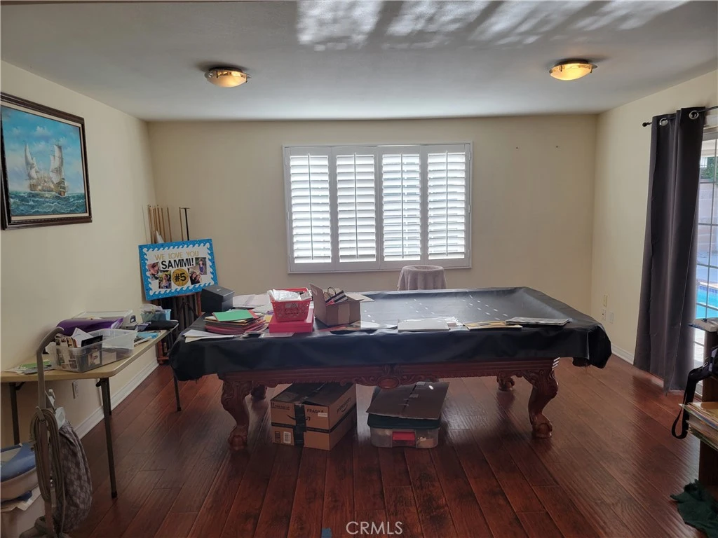 Large single-story pool home on a quiet cul-de-sac street in North Hills. 4 bedrooms, 3 baths with 2,491square feet of living. Large living room with fireplace, separate bonus room. Oversized family room / formal dining room with custom cabinets, granite countertop and wet bar. Remodeled kitchen with granite counter tops, stainless steel appliances. Spacious open floor plan. Hardwood floors and recessed lighting throughout. Primary bedroom with private remodeled bath with double sinks, granite counters and walk in closet. Private backyard with pool and covered patio. Additional features include dual pane windows, central heat and air, plantation shutters and energy efficient solar.