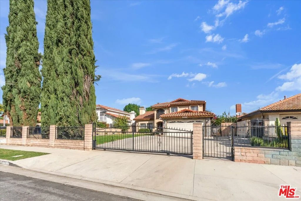 Rare opportunity to own a gated, original owner estate offering nearly 3,000 square feet of living space on an expansive 9,000 sq ft lot one of the best values currently available in the Valley. Privately set back from the street, this property features an oversized driveway with ample parking for RV, boat, car collectors, or recreational vehicles, a true find for buyers seeking space and versatility. Inside, a highly functional floor plan centers around a spacious great room highlighted by a striking Bouquet Canyon stone fireplace. The formal dining room flows seamlessly into the kitchen and adjoining family room, creating ideal spaces for both entertaining and everyday living. The flexible layout includes two potential downstairs bedrooms, including a private suite with its own separate entrance, ensuite bathroom, and space for a future kitchenette ideal for multigenerational living, guest quarters, rental income potential, or a potential future ADU conversion. Upstairs features three additional bedrooms, including a generously sized primary suite complete with dual closets, private bath, and a covered balcony overlooking the grounds. The backyard is designed for Southern California living, showcasing a resort style pool, covered outdoor living and dining area, plus a dedicated pool bath/changing room perfect for year-round entertaining. Located adjacent to Carlos Santana Arts Academy, known for its integrated arts curriculum and dual language education programs, adding long term neighborhood value and desirability. Ideal for multigenerational households, remote work lifestyles, or buyers seeking space, privacy, and flexibility in a prime Valley location.