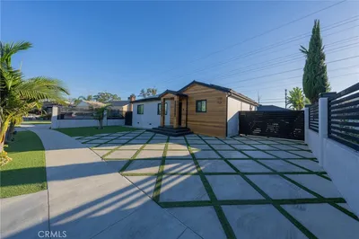 Modern Sophistication Meets Resort-Style Living in this FULLY FURNISHED beauty! Experience the pinnacle of contemporary design in this meticulously upgraded residence. From the curb, the home impresses with a sleek facade featuring natural wood siding, smooth stucco, and a designer glass-inlay front door. Step inside to an open-concept sanctuary defined by brilliant white marble-style flooring, recessed LED lighting, and a skylight that floods the space with natural light. Home also has an upgraded solar system to minimize your utility bill! The chef’s kitchen is a masterpiece of form and function, boasting custom charcoal-textured cabinetry, striking quartz countertops with a waterfall edge, and professional-grade stainless steel appliances—including a built-in wine cooler. The living area serves as a perfect focal point with its custom-finished accent wall and integrated media center. The backyard is an entertainer’s dream, featuring a massive covered deck with warm wood paneling that transitions seamlessly into a geometric hardscape with integrated turf. Relax by the sparkling pebble-tec pool and spa, surrounded by lush privacy hedging and designer lighting. This is more than a home; it’s a private retreat.