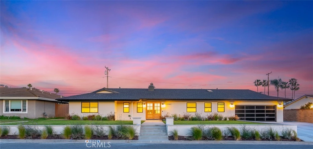 Welcome to 12592 Singing Wood Dr – a stunning single-story estate nestled in the highly sought-after North Tustin community. This beautifully upgraded 3,185 sq ft home offers 5 spacious bedrooms, 5 well-appointed bathrooms, and a thoughtfully designed open floor plan perfect for both everyday living and entertaining. Step through the front doors and immediately feel the warmth of natural light pouring in through expansive windows, creating an inviting and airy atmosphere throughout. Elegant wood flooring, oversized baseboards, and clean, modern lines set the tone for the sophisticated yet comfortable interior. The heart of the home is the gourmet chef’s kitchen – a true culinary dream featuring a massive center island, sleek quartzite countertops, a walk-in pantry, and an abundance of custom cabinetry. High-end appliances include a Sub-Zero refrigerator, Café double oven, dual dishwashers, a built-in microwave/oven combo, and an ILVE 8-burner stove, all designed to elevate your cooking experience. The kitchen flows seamlessly into a grand family room with soaring 18-foot ceilings, exposed wood beams, and a striking natural stone fireplace – a perfect blend of charm and modern elegance. The home’s layout is both functional and private, with three guest bedrooms on one wing – including a junior suite with an en-suite bath – while the luxurious primary suite is tucked away on the opposite side. The spacious primary retreat boasts vaulted ceilings, a walk-in closet, and a spa-inspired en-suite bath with dual vanities, illuminated mirrors, a soaking tub, and a walk-in shower wrapped in quartz finishes. Additional highlights include a thoughtfully designed mudroom and bi-fold doors that open to a serene backyard oasis, offering seamless indoor-outdoor living – quintessential California style. Located minutes from top-rated schools, shopping, dining, Tustin Ranch Golf Club, and convenient access to the 55 and 5 freeways, this home offers the best of North Tustin living. Don’t miss this rare opportunity to own a truly exceptional home in one of Orange County’s most desirable neighborhoods.
