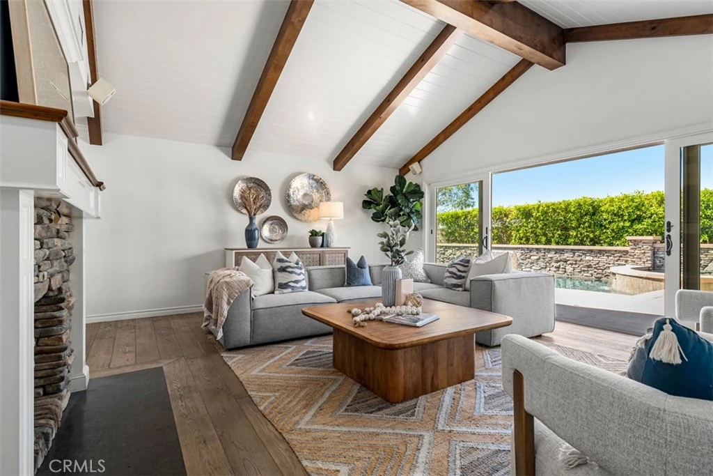 A rare opportunity to own a beautifully upgraded California ranch home that perfectly blends modern luxury with everyday comfort. Thoughtfully designed with an open-concept layout, this residence is filled with natural light and showcases high-end finishes throughout, creating an inviting atmosphere ideal for both relaxed living and effortless entertaining. At the heart of the home is a stunning designer kitchen, outfitted with professional-grade appliances, custom built-in cabinetry, and seamless flow into the main living spaces with vaulted ceiling. Rich hardwood flooring enhances the primary areas, while plush carpeting in the bedrooms adds warmth and comfort. Additional interior highlights include central heating and air conditioning, a circulating hot water system for instant convenience, and a spacious laundry area complete with an under-counter washer and dryer. Beyond the main living areas, the home offers exceptional versatility. A finished garage features built-in cabinetry, while a private office adorned with elegant mahogany cabinets provides a refined workspace. Above the office, a loft offers the perfect setting for a playroom or additional storage. A mudroom-style side entry adds functionality, and a unique indoor basketball/play area brings an element of fun and recreation. Step outside to experience true indoor-outdoor California living. An expansive covered outdoor room extends from the main living area, complete with a built-in BBQ, hood, beverage center, ice maker, and sleek concrete countertops. An outdoor fireplace creates a cozy ambiance, making this space perfect for year-round gatherings. The backyard is a private resort, featuring a sparkling pool with a premium Hydrazzo finish, an in-floor cleaning system, and a dedicated pump for water features—all controlled through a convenient in-home system. The professionally landscaped grounds are designed for beauty and efficiency, with drip irrigation, a drainage system, and low-voltage lighting enhancing the setting. Additional amenities include a lighted side yard providing easy access to the garage and pool area, a storage shed, and a charming private front courtyard—an ideal retreat for quiet mornings or evening relaxation. This exceptional property offers the perfect balance of luxury, functionality, and lifestyle—truly a place to call home.