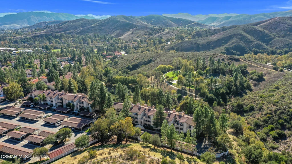 Wake up to sweeping mountain views, breathe in the fresh open air, and enjoy a level of privacy rarely found at this price point in Oak Park. Tucked into one of the most secluded locations in the community, this single-level end unit backs to peaceful greenbelt and captures panoramic vistas from both inside and out. Positioned at the very rear of the complex, the home offers exceptional quiet and a sense of retreat.Freshly painted interiors, new luxury vinyl plank flooring, and recessed lighting create a light, open, and airy atmosphere throughout the flowing floor plan. The living room opens seamlessly to a private patio, blending indoor and outdoor living -- perfect for morning coffee, entertaining, or relaxing at sunset. Sliding glass doors from both bedrooms and the living area extend the living space outdoors, enhancing the home's tranquil connection to its natural surroundings.Designed for comfort and functionality, the residence features true single-story living with no interior steps (accessed by one staircase down to the unit), 2 bedrooms, 2 full baths, and approximately 1,104 square feet. Additional highlights include a California Closets organization system in the primary suite, a dedicated laundry room, two covered parking spaces, and the added privacy of an end-unit location.Residents enjoy resort-style amenities including a sparkling pool and spa, tennis courts, fitness center, racquetball and basketball courts, volleyball area, and BBQ picnic spaces -- offering a lifestyle that extends well beyond the front door. Ideally located near top-rated Oak Park schools, shopping and dining, and miles of scenic hiking and biking trails, this home presents an exceptional opportunity for first-time buyers, downsizers, or anyone seeking privacy, views, and effortless California living.