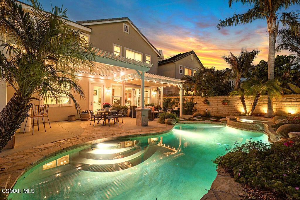 Stunning 4-bedroom, 4-bath home in the highly sought-after Chambord neighborhood of Oak Park! This light-filled residence features Luxury Vinyl Plank flooring, renovated bathrooms, and numerous upgrades throughout, including FULLY owned solar panels providing long-term energy savings. The DESIGNER Kitchen--one of the many standout features of this amazing home--showcases high-end WOLF and SUB-ZERO appliances and is perfect for everyday living and entertaining.The oversized primary suite offers spectacular views of Oak Park and the iconic Ladyface Mountain ridge, with a SPA-INSPIRED ensuite bathroom featuring a freestanding soaking tub and walk-in shower. Additional flexible living space includes a downstairs bonus room ideal for a home gym or play area and an upstairs bonus space perfect for a home office or media room.The private backyard is designed for entertaining and family enjoyment. It features a pool and jacuzzi with waterfall elements that create a tranquil, resort-like atmosphere. An island-style outdoor bar with built-in refrigerator and stainless steel grill complements the space, while an oversized courtyard-style side yard is perfect for dining alfresco or relaxing under the stars.Ideally located near scenic hiking trails, this home is also part of the AWARD-winning Oak Park School District. Just moments away, Deerhill Park--a local favorite--offers POPULAR pickleball courts, soccer fields, a baseball field, and shaded seating areas perfect for family gatherings, celebrations, and outdoor enjoyment. Enjoy the convenience of a short drive to Malibu's beaches, dining, and shopping--offering the perfect balance of lifestyle and location. A truly ONE-OF-A-KIND home not to be missed