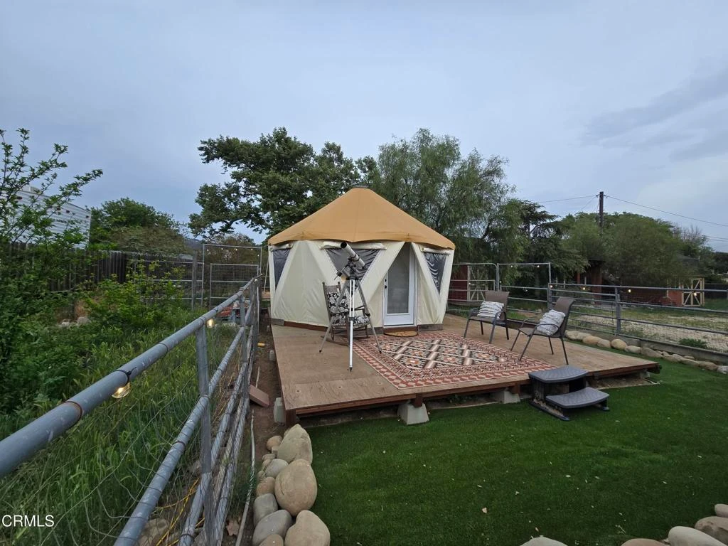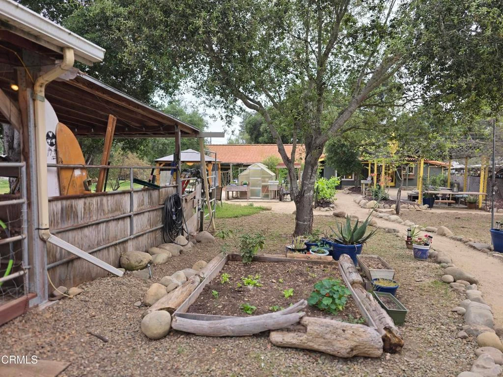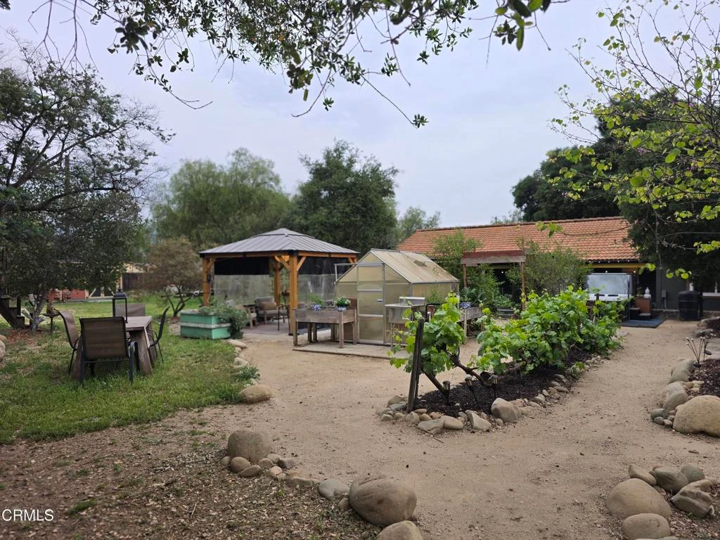 Discover your own private retreat, tucked behind a gated entrance on nearly an acre. Where rustic charm meets modern comfort with sweeping vineyard and hillside views. This thoughtfully renovated home features a warm open-concept layout, anchored by a spacious kitchen with large gathering island, and a premium Wolf range. Luxury vinyl plank flooring, dual-paned windows throughout, bonus family room with french doors. The primary suite boasts a relaxation space / closet. with a soaking tub, vanity area, built-in fan/bluetooth speaker creating a meditative environment that continues outside to the adjacent koi pond.Step outside into a serene and inspiring oasis - the grounds are designed for enjoyment and have endless possibilities. Winding decomposed granite pathways lead you past many gathering spaces, mature oak trees, large chicken coop, corral for livestock, and a greenhouse surrounded by raised beds - with an off-grid vibe, it's perfect for the hobby farmer. Spend sunny afternoons in the above-ground pool, or relax and star gaze from the bubbling spa. Versatile bonus spaces include a fully outfitted yurt, and four finished Tuff sheds. Perfect for guest overflow, creative studios, or work-from-home set ups. Located just minutes from Lake Casitas, local dining, and easy commuter routes, this property combines the quiet serenity of country living with accessibility--perfect for those seeking a warm, inviting, and truly unique ranch lifestyle.