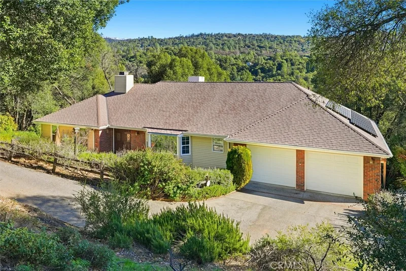 Nestled in a quiet and private neighborhood conveniently located near the towns of Oakhurst and Bass Lake, and only 30 minutes from Yosemite National Park, this turnkey home offers the perfect blend of comfort, efficiency, and natural beauty. Enjoy amazing views from the newly built, expansive back deck—perfect for relaxing or entertaining in a peaceful mountain setting. The kitchen is well-appointed with an abundance of cabinetry, a large butcher block island with pendant lighting, double ovens, and generous pantry storage—ideal for both everyday living and entertaining. The home is energy efficient, featuring leased solar and dual-pane windows. Vinyl siding, a defined entry, and maintained foliage clearance contribute to reduced fire risk and low-maintenance living. This home offers four bedrooms and two bathrooms, with one bedroom thoughtfully converted into a media room featuring beautiful interior French doors. Guest bedrooms include tasteful crown molding, and the remodeled guest bathroom is bright and inviting with a walk-in tiled shower and pedestal sink. The washer and dryer are conveniently located inside a utility room with an additional sink. The oversized primary suite is privately situated apart from the other bedrooms and filled with natural light from multiple windows, including a bay window in both the bedroom and bathroom. The spa-like primary bathroom features double sinks with separate vanity areas, a private toilet room, and a jetted tub perfectly positioned to take in panoramic outdoor views through the bay window. Architectural highlights include high beam ceilings, a charming bay window, and a step-down living room with a vaulted wood ceiling and cozy wood-burning fireplace. Three bedrooms, along with the dining room and living room, offer direct access to the back deck, creating a seamless indoor-outdoor living experience. An unfinished partial basement provides additional storage or future potential. A quiet and private front patio completes this inviting property, making it ideal as a full-time residence, mountain retreat or investment property.
