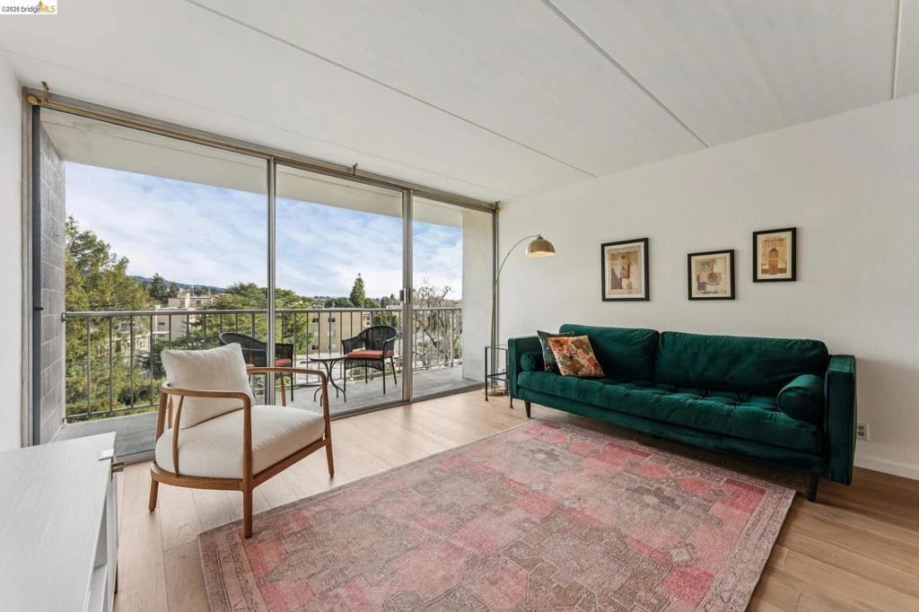 As soon as you enter this 8th floor unit, you’ll be taken with the lush and tranquil views. Floor-to-ceiling windows in every room look out on redwood trees and the Oakland hills. Relax and work at home in rooms with plenty of light. Enjoy the easy indoor-outdoor flow to a spacious, private balcony where you can relax with your morning coffee or evening wine. You’ll find tons of closets, including a huge walk-in closet that could be used as an office. Engineered wood floors add warmth to this tranquil living space. The condo comes with a deeded parking place in a gated garage and a separate storage space. All the while you are only 3 blocks to Piedmont Avenue and everything the neighborhood has to offer. Want a special occasion dinner in a fine dining restaurant? Want an excellent meal in a casual restaurant? Piedmont Avenue has it all: restaurants, cafés, bookstores, a movie theater, grocery stores, gift shops, transportation, and more! Live close to everything then come home and be a world away.