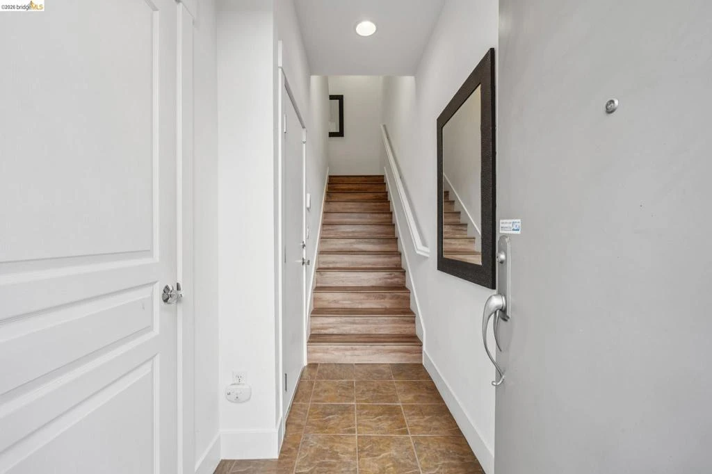 Enjoy modern townhouse style living in the Artisan Walk community! Situated in a quiet garden location in this well-run complex, this sun-drenched unit perfectly blends contemporary design with effortless functionality. The open-concept living areas feature expansive windows that flood the space with natural light with views of the Oakland city skyline, creating a bright and airy atmosphere. At the heart of the home, the updated kitchen shines with designer colors, stainless steel appliances, and breakfast bar seating, flowing seamlessly into the dining area. From here, enjoy a smooth transition to a spacious balcony—perfect for morning coffee or evening relaxation. This residence offers two spacious bedrooms and two full bathrooms, including a primary suite complete with dual sinks and a generous walk-in closet. The home includes a Nest thermostat, central heat and AC, and a compliant sewer lateral. Exceptional utility is found in the large tandem two-car garage with interior access and additional storage rooms. Ideally located with a 93 Walk Score, this move-in-ready gem is close to the Emeryville Greenway and numerous favorite local amenities and eateries. With easy access to transportation, this home represents the best of East Bay living.