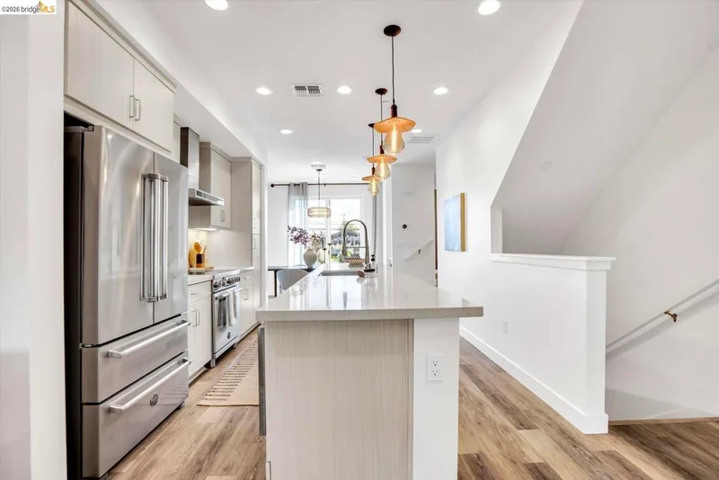In a neighborhood buzzing with bold eateries, craft breweries, and Oakland's signature energy, this sleek, sunlit home stands out. The open-concept space flows effortlessly from living to kitchen to dining, all anchored by a chef-ready kitchen with a Bertazzoni Italian oven and Bosch dishwasher. Grab the perfect bottle from the built-in wine fridge and head out to your private balcony for al fresco evenings. Upstairs, both bedrooms feature en-suite bathrooms, offering a rare level of privacy and comfort. Practicality meets tech with bedroom-level laundry, a Nest thermostat, fiber internet, and owned solar panels for sustainable living. Primary suite built for two - double vanities, dual closets, and custom built-ins so there's room for everything (and everyone). Need space for your car, gym, or storage? The two-car tandem garage flexes to fit your lifestyle. This isn't just a home; it's a perfect blend of high-end style and big Oakland energy.