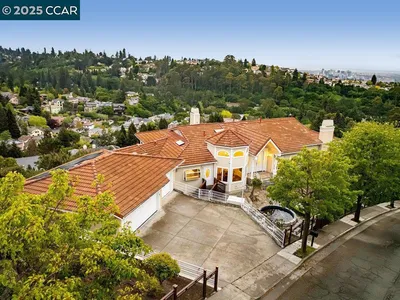 Perched behind a private drive at 33 Somerset Road in Oakland (not Piedmont), this exceptional hillside estate commands sweeping panoramic views from the Golden Gate Bridge to the San Mateo Hills, offering rare privacy just steps from Piedmont. Spanning more than 6,900 square feet, the sophisticated residence features five bedrooms, four ensuite, and five-and-a-half baths, blending impressive scale with quiet comfort. Elegant interiors flow effortlessly, anchored by a chef’s kitchen and vaulted family room with rich wood detailing and dramatic wall-of-glass opening to a sun-drenched deck where sunsets become part of daily life. Flexible spaces for media, fitness, sauna, or office complement finely crafted finishes throughout. Lush gardens, level patios, elevator access, and a two-car garage complete the serene retreat. Minutes from Montclair Village, Rockridge, Piedmont Avenue, regional parks, and major commute routes—and with potential access to Piedmont schools via Interdistrict transfer program—this distinguished home offers expansive living in one of the Bay Area’s most coveted locations. NO videos, photos or social media content generation without prior consent from Seller/Listing Broker. Views: Downtown