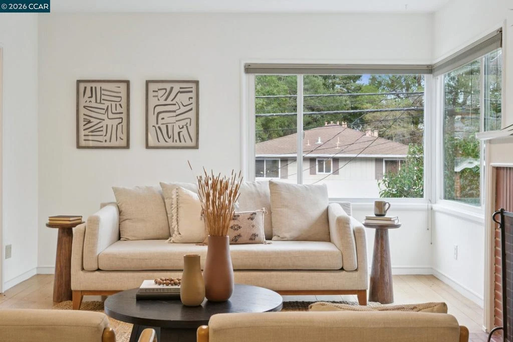 This Glenview home is a study in smart scale. Two bedrooms, one bath, yet it unfolds with a sense of volume and ease from the moment you walk in. Large picture windows flood the space with natural light, and an elegant fireplace anchors the living room with warmth and presence. The layout flows easily into a true dining area and a remodeled kitchen that delivers: quartz counters, a skylight overhead, clean modern finishes, and a layout designed to handle serious cooking. It’s stylish, functional, and designed for gathering. A short set of stairs creates a thoughtful separation between public and private spaces. Upstairs, two well-sized bedrooms and a renovated full bath offer a quiet retreat, subtly removed from the energy of the main level. The tiered backyard extends the living space outdoors with multiple lounge areas, space for dining under the open sky, and room to play and unwind. Usable, flexible, and ready for spring dinners and long summer evenings. Just moments from Glenview’s vibrant shopping and dining pocket, with acclaimed restaurants and neighborhood boutiques, and a minutes walk to Dimond Park for green space and recreation. Updated where it counts. Solid bones. Move-in ready. A home that lives larger than expected and delivers Glenview living exacty as it should.