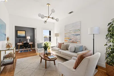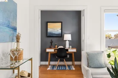 Sunny upper-level flat in a coveted Temescal location, thoughtfully updated with stylish design and quality craftsmanship with park-like yard! This inviting home features two spacious bedrooms, a generous living room, and a beautifully remodeled eat-in kitchen with quartz countertops, tile backsplash, upgraded appliances, stylish lighting, and ample storage. The updated bathroom offers a frameless glass walk-in shower with modern tile and fixtures, plus a flexible nook ideal for a home office. Hardwood floors, spacious closets, upgraded lighting, and a cheerful palette complete the interior. The back deck leads to landscaped yarc with lounge areas and an abundant urban oasis featuring plum, fig, lemon, apricot, pear, and quince trees, along with blackberry vines, roses, jasmine, and veggie and herb beds. Shared storage for bikes and more. Located across from Temescal Alley and moments from neighborhood favorites like Pizzaiolo, Cholita Linda, Bakesale Betty, Burma Superstar, Snail Bar, and Marufuku Ramen. Near Peet’s, Forma Bakery, Poppy Bagels, Whole Foods, Sunday farmers’ market, Rockridge and MacArthur BART, AC Transit, tech shuttles, and Highways 13, 24, and 580. 98 WalkScore® and 92 BikeScore™!