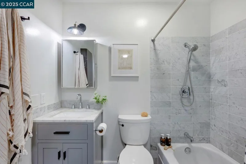 Perfect for Seniors, First-Time Buyers & Remote Work! Listed at an amazing price (all offers subject to lender approval). This updated home features a modern kitchen with stainless steel appliances, quartz counters, new cabinetry, open shelving, and an adjacent dining area that flows into the main living space. Enjoy serene SF skyline views from your private rear-facing balcony. Flexible layout includes a bonus space off the bedroom—ideal for office, nursery, or workout room. Updated bath with Cle tile and newer vanity, double-pane windows, newer flooring, light fixtures, and double-door closets for ample storage. No shared walls with neighbors for extra peace and quiet. Prime location near Piedmont Avenue shops, restaurants, Whole Foods, Rose Garden, and Lake Merritt. Shared laundry and storage on the same level plus designated garage parking.