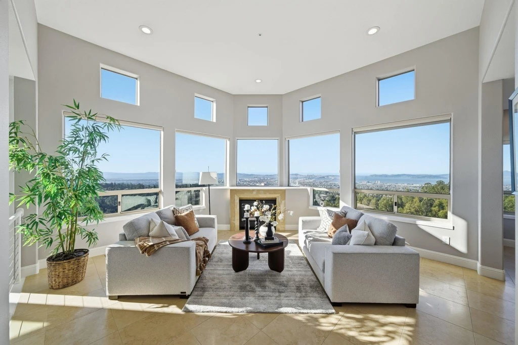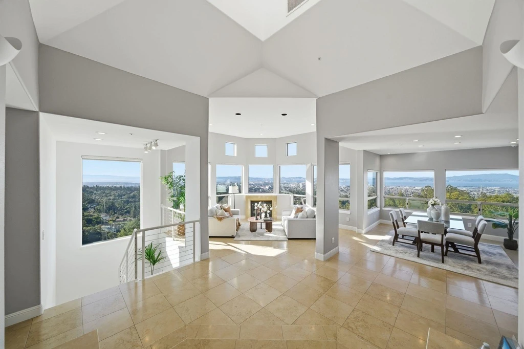 Perched at the end of a quiet level cul-de-sac, views encompassing all 5 bridges, San Francisco, & even the Farallon Islands. Originally envisioned as a high-end Mediterranean estate, the home has been thoughtfully updated to fuse timeless architectural warmth w/crisp contemporary sophistication. The result is a residence that feels both enduring & current—an effortless blend of design, comfort, & innovation. 4+ Bedrooms | 3.5 Baths | Chef’s Kitchen Dramatic entryway sets a grand tone from the moment you arrive. Chef’s kitchen w/Silestone quartz countertops, custom cabs, modern plumbing & lighting fixtures, & stainless appliances designed for entertaining, w/a fluid connection to both formal & informal open living spaces. Appliances include a Sub-Zero refrigerator/freezer, Miele oven & exhaust, & a Lutron remote-controlled shutter system in the kitchen. 2 primary suites, 1 featuring a sauna, spa-style bath,& 1 w/unparalleled views stretching 2 the horizon. Expansive level backyard ideal 4 croquet, badminton, gardening, or simply relaxation. Expansive deck clad in Brazil Ipe wood, offering an outdoor living experience. Eco-upgrades: 8 kW+ solar array paired w/2 Tesla Powerwalls for energy independence. Views, level outdoor spaces, &high-end finishes can all be yours. Views: Ridge, Downtown