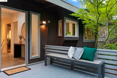 Contemporary Montclair Hills Retreat w/Great Outdoor Spaces. Verdant views, wood beam ceilings & a relaxed mid-century sensibility define this sophisticated residence, offering true indoor outdoor living w/exceptional flow to the surrounding grounds. Beam ceilings & designer lighting carry through dining & living rooms, w/lush greenscape views giving way to a brick wood burning fireplace & forested treetop views. The kitchen features stone countertops, stainless appliances & undermount sink, flowing into the dining room ideal for entertaining. The primary suite includes a wall of closets & updated bath w/aqua subway tile, frameless glass shower & dual vanity w/concrete sinks. Sliding doors open to a private balcony among the treetops. An additional bedroom & hall bath pairing a classic clawfoot tub w/crisp modern finishes complete the main level. The lower level, finished in bamboo flooring throughout, offers two additional bedrooms, full bathroom, laundry & ample storage, plus a generous den w/standalone gas fireplace & sliding doors to lush outdoor spaces. Flowing off the den, a newly renovated deck & level-out rear gardens perfect for play & upcoming spring & summer soirees. Minutes from Montclair Village shops & restaurants w/nearby trail access & Highway 13.