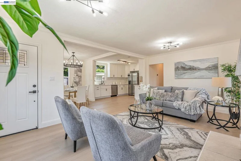 Walk into instant equity in the desirable neighborhood. This beautifully remodeled 4-bedroom, 2-bath home offers the perfect combination of modern style, comfort, and convenience. Step inside to an inviting open-concept layout, one story, featuring a stunning updated kitchen with sleek cabinetry, modern finishes, and seamless flow into the living and dining areas—ideal for both everyday living and entertaining. The spacious bathrooms have been tastefully redesigned with contemporary finishes, creating a relaxing, spa-like feel. Enjoy scenic views of the Oakland Hills from the front yard and picture window, while the backyard offers a private, resort-like setting perfect for relaxing evenings, outdoor dining, or hosting family and friends. Situated on a generous lot over 6000 Sq, the property provides ample space for outdoor enjoyment and future potential, including the possibility of adding an ADU or expanding the home (buyer to verify). Conveniently located near major freeways, schools, and public transportation, commuting is easy while still enjoying the tranquility of a residential neighborhood. Just approximately 15 minutes from Oakland’s vibrant dining, shopping, and entertainment scene. All renovations completed with permits.